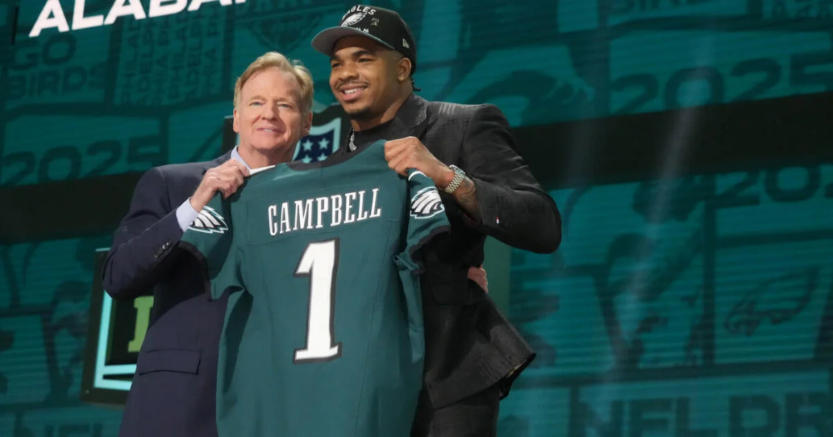 Another year, another draft day steal for Howie Roseman. Philadelphia traded up one spot with the Kansas City Chiefs to add Alabama linebacker Jihaad Campbell. The Crimson Tide product did have some health questions due to a shoulder injury, which hurt his stock but there’s no denying his talent. Campbell is No. 13 on CBS Sports’ overall prospect rankings, and had been viewed as a player who’d come off the board in the late teens or early 20s of the draft. Instead, Campbell — who was first-team All-SEC last year — joins the Super Bowl champs.