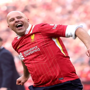 Briefly, Arne Slot seemed to lose himself in the moment. A red Liverpool shirt on top of the smart-casual blue outfit he has donned, with great predictability, for every match,…