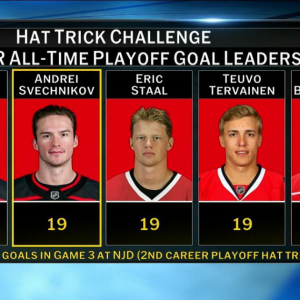 Andrei Svechnikov pots second career playoff hat trick NHL Tonight previews game four in Edmonton NHL Tonight on Connor Hellebuyck getting pulled in game four Avalanche tie the series in…