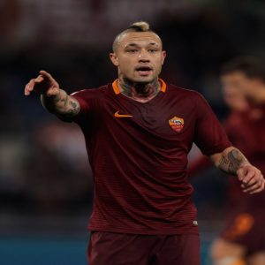 Radja Nainggolan of AS Roma gestures during the Serie A match between AS Roma and ACF Fiorentina at Stadio Olimpico on February 7, 2017 in Rome, Italy. (Photo by Paolo…