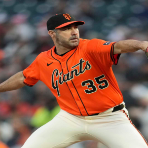 San Francisco Giants pitcher Justin Verlander works against the Texas Rangers during the first inning of a baseball game in San Francisco, Friday, April 25, 2025. (AP Photo/Jeff Chiu) Jeff…