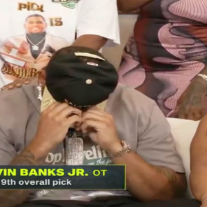 Kelvin Banks Jr.’s Infant Son Vomits on Live TV After He’s Drafted by the Saints in Viral Moment