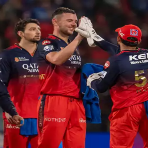 IPL 2025 Josh Hazlewood celebrates bowled an excellent 19th over conceding only one run and picking two wickets © Sportzpics It happened again! Rajasthan Royals squandered yet another great opportunity…
