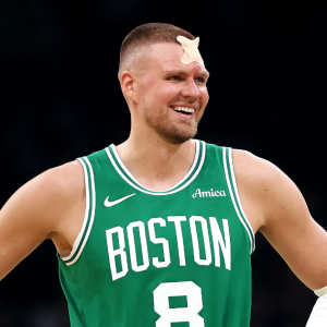 Kristaps Porzingis receives a loud ovation as he returns to the court to shoot free throws with a giant band-aid on his forehead. BOSTON (AP) — With blood pouring from…