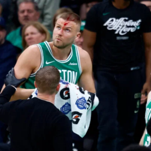 Celtics Celtics center Kristaps Porzingis (right) received a cut to the forehead after being on the receiving end of an elbow from Magic center Goga Bitadze during the third quarter….