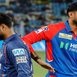 Digvesh Rathi into the attack. Nair cuts, misfield at points gives a single. Porel leans forward and slaps the ball towards cover for four! Karun Nair and Abishek Porel open….