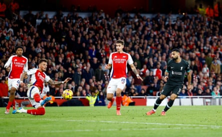 On the last weekend before Christmas Liverpool gave their supporters a cracking present. The 6-3 victory at Tottenham was a throwback to the Jürgen Klopp days in how thrilling the performance was by those in red, the only negative being the two goals the visitors allowed Spurs to score from 5-1. Nonetheless, Luis Díaz put the cap on a triumph that took Liverpool four points clear, and across London the previous day there had been a further notable moment in the title race when Bukayo Saka sustained a hamstring injury in Arsenal’s 5-1 victory at Crystal Palace that would sideline the winger for more than three months. Mikel Arteta’s side may well not have caught Liverpool even if Saka had stayed fit but his absence made the task especially difficult.