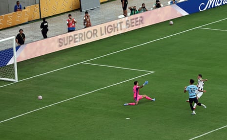 45 min +3: Marmoush is afforded too much time in a pocket of space 25 yards out. He skelps a dipping shot towards the bottom right. It’s heading in. Probably. Di Gregorio can’t take any chances, though, and turns it away. Fine save, and nothing comes of the resulting corner.