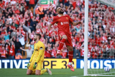 Mohamed Salah’s extraordinary tally of goals and assists have made him the envy of the Premier League and beyond. Photograph: Phil Noble/Reuters