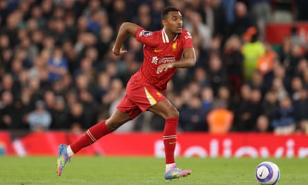 Slot’s lack of ego is reflected in his style of play. He embraced Klopp’s players along with elements of Klopp’s game – see the second-half onslaught against Brighton that took Liverpool top on 2 November, a position they never relinquished – while introducing more control and composure on the ball. Midfield has flourished as a result. The deployment of Ryan Gravenberch as a No 6 has been a revelation. Slot planned the switch before Liverpool missed out on their main transfer target of last summer, Real Sociedad’s defensive midfielder Martín Zubimendi. Gravenberch was not thrust there out of necessity after. Slot and Liverpool’s chief scout, Barry Hunter, were aware of the Netherland international’s ability to play a more defensive role from watching him at Ajax. A standout display in the 3-0 pre-season win over Manchester United in Columbia, South Carolina convinced them to press ahead.