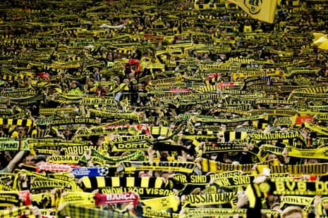 There’s plenty of enthusiasm at Signal Iduna Park amongst the Dortmund fans … Photograph: Friedemann Vogel/EPA