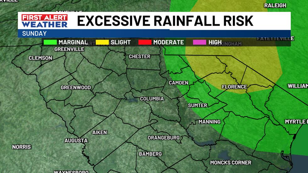 Those in the far eastern and northeastern Midlands will have a better potential of seeing tropical downpours and breezy winds. Gusts could be between 20-30 mph into Sunday morning. Chantal could also spread some showers and a few storms overhead, mainly across areas farther east and closer to the center of circulation. Some showers could contain locally heavy rainfall. Some minor flooding can’t be ruled out for areas that are low-lying and have poor drainage.