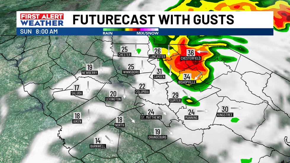 COLUMBIA, S.C. (WIS) – While the bulk of the impactful weather from Tropical Storm Chantal will stay east of the Midlands, we will be tracking the chance of tropical downpours and breezy winds this morning, mainly east and northeast of Columbia.