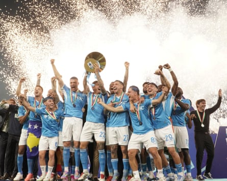 The club’s president, Aurelio De Laurentiis, stood awkwardly to the side, awaiting his turn. It is no secret that there has been tension between him and Conte, the manager frustrated – and you’ve heard this one before – with a perceived lack of investment in the squad, especially after Kvaratskhelia’s departure. Neither would commit in post-game interviews to the manager being back again next season.