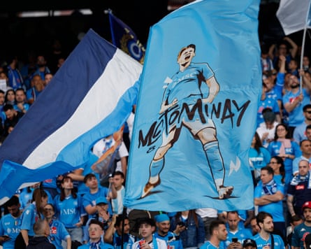 Supporters held off for as long as they could. Not until the final moments of Napoli’s 2-0 win over Cagliari on Friday did the giant white sheet come cascading down the stands of the Stadio Diego Armando Maradona with an enormous black “4” in the middle. Green and red flares were set off either side to create the colours of the Italian flag. The same that appear on a scudetto badge.