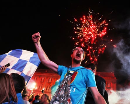 Napoli fans celebrate after winning the Italian league title for the second time in three years. Photograph: Salvatore Laporta/AP