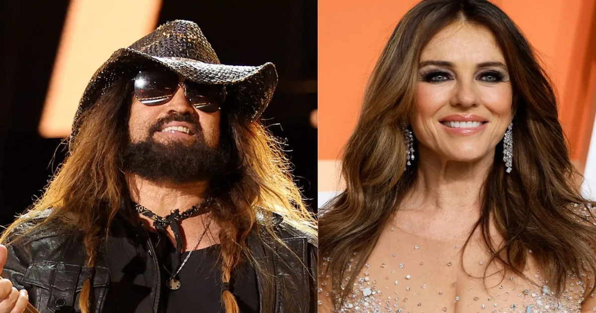 Standing next to Hurley was country singer-songwriter Billy Ray Cyrus. The 63-year-old musician, wearing a denim shirt with striped pants and a bunny ears headband, planted a kiss on Hurley’s cheek as she cheerily posed in a blue flannel shirt and matching jeans.