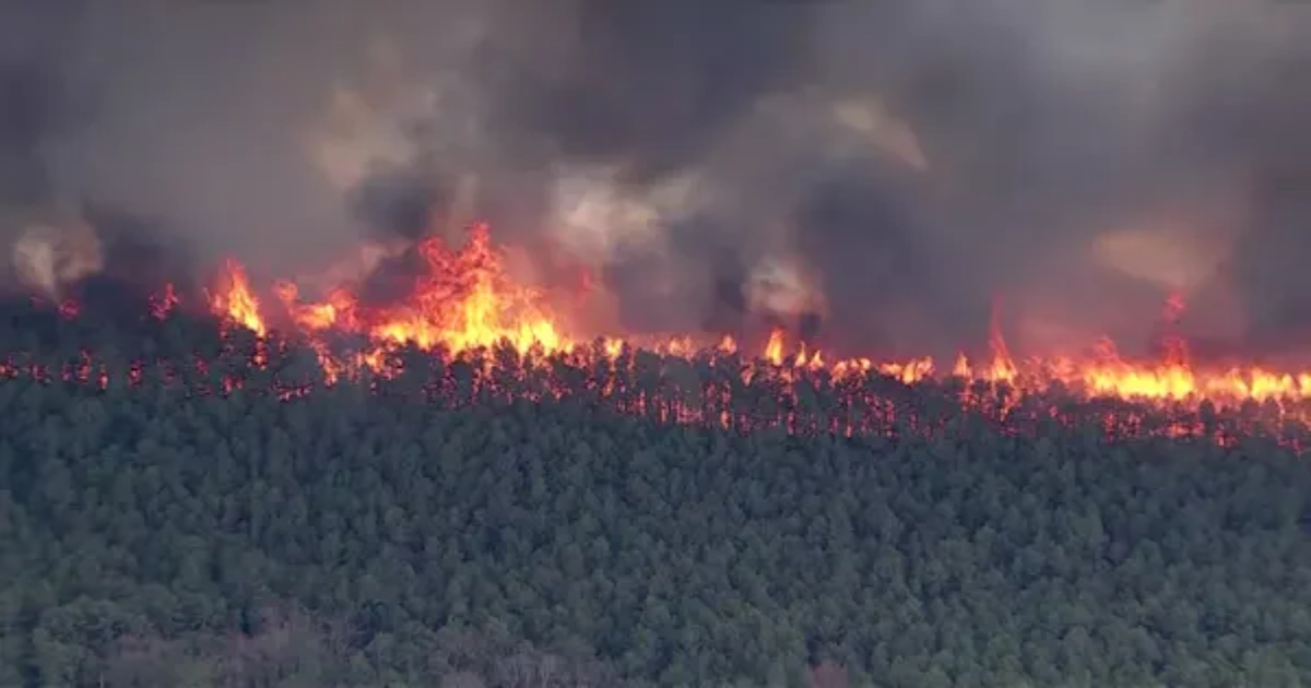 The New Jersey Forest Fire Service says 3,200 acres of land is burning in Barnegat Township in Ocean County.