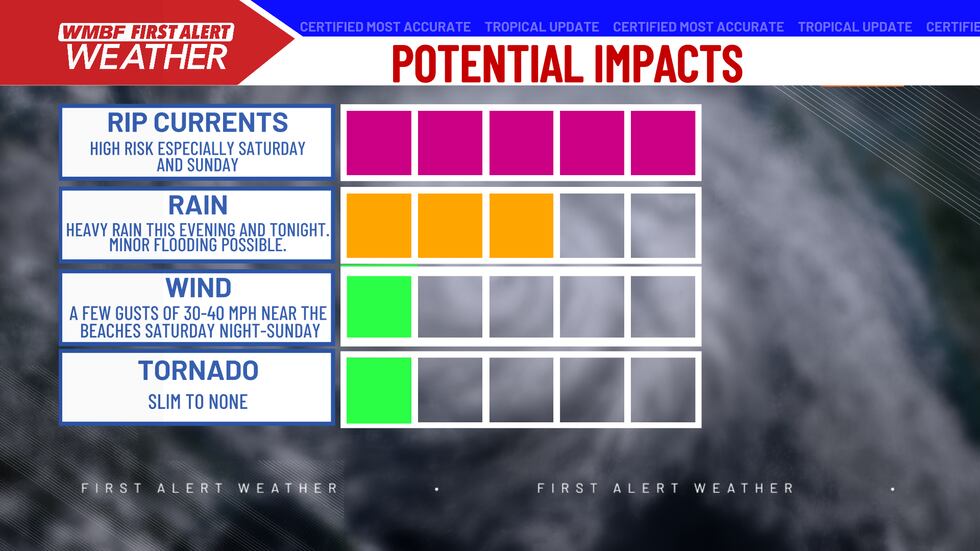 Heavy rain and rip currents are the main concerns with this system.(WMBF)