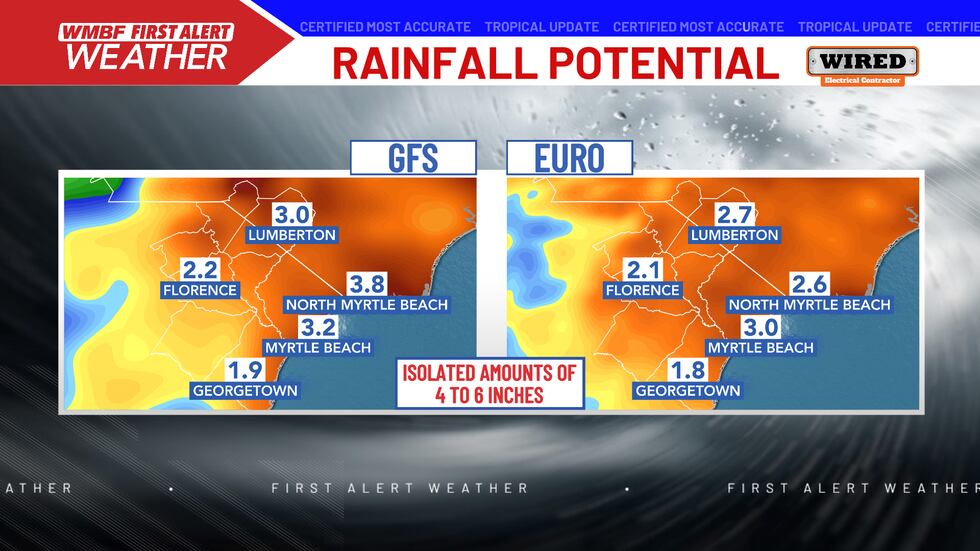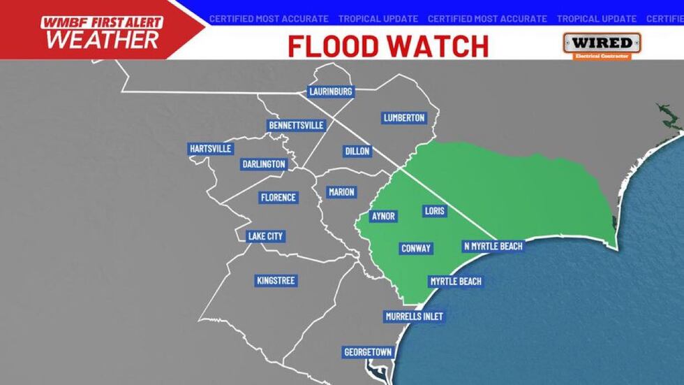 A Flood Watch has been issued for all of Horry County into southeastern North Carolina. Chantal will bring periods of heavy rain with 4 to 6 inches possible in some areas.