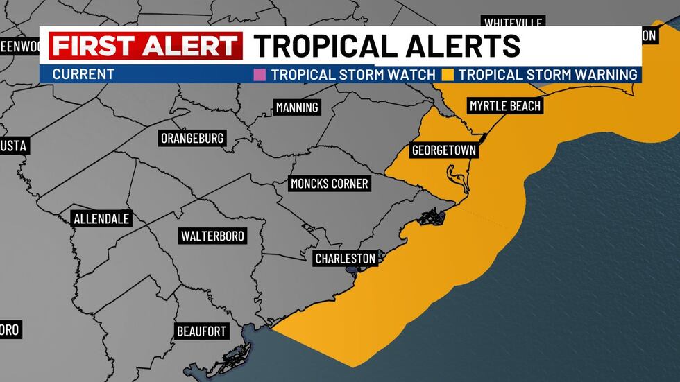 A Tropical Storm Warning remains in effect from the South Santee River to Surf City, North Carolina.(Live 5)