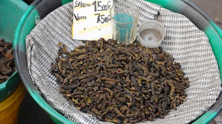 Mealworms for sale at Gambela market in Kinshasa, Democratic Republic of the Congo. Photograph: Reuters