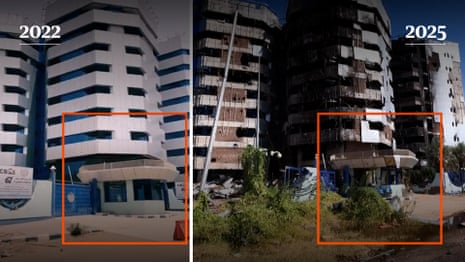Khartoum before and after: footage shows destruction wreaked by war in Sudan – video