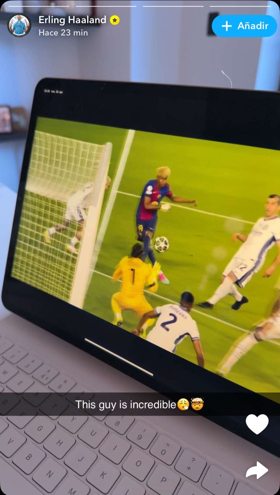 The Manchester City striker, known for being reserved on social media, surprised fans by sharing a Snapchat story with a picture of Lamine and the caption: “This kid is incredible.” The post went viral instantly, sparking a wave of reactions from fans and media alike, as it’s rare to see the Norwegian publicly praise other players.