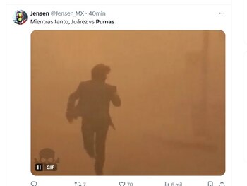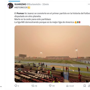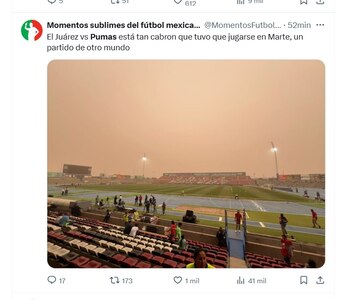 “El Juárez vs Pumas está tan cab***n que tuvo que jugarse en Marte, un partido de otro mundo”, “Pumas por años obligó a sus rivales a jugar en CDMX al medio día con temperaturas altas y ahora los cabr*****s se niegan a salir a jugar contra Juárez por el mal clima jaja”, “Si no supiéramos el contexto: esto parecería un filtro de película americana, cuando muestran a México o modo apocalíptico”, fueron algunos de los comentarios que surgieron.