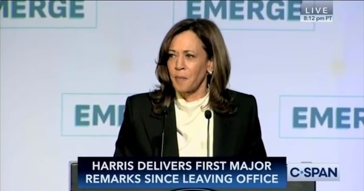 Former Vice President Kamala Harris criticized Donald Trump by name Wednesday in her first major speech since losing the 2024 presidential election.