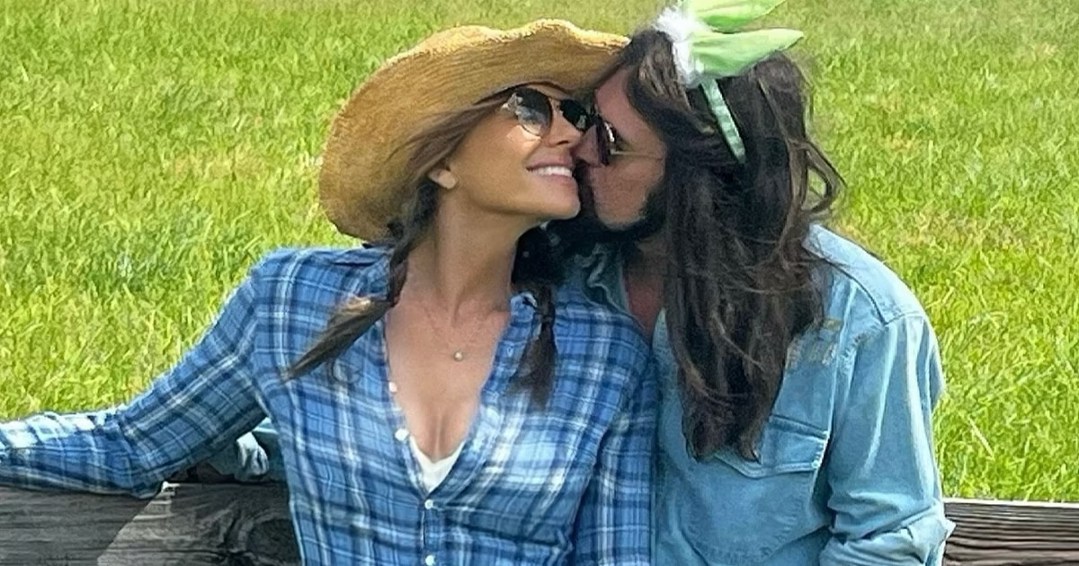 Because here is Elizabeth Hurley, leaning in for a kiss with her new man.