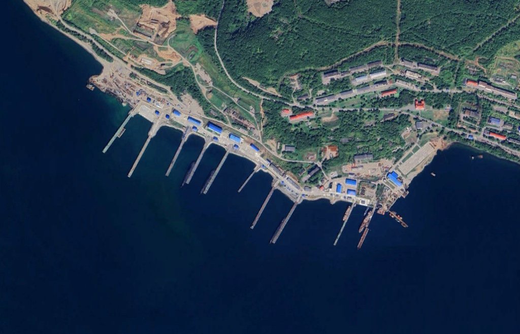 3/ The bay has multiple installations, but three stand out: the North-Eastern Repair Center, which services both diesel and nuclear submarines; the Rybachiy Submarine Base, home to Pacific Fleet submarines; and a specialized SLBM loading jetty used for arming submarines. pic.twitter.com/0A5YADbkvZ