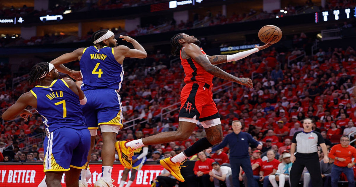 In Game 1, Quinten Post and Kevon Looney were only on the floor a combined 21 minutes, partially separated from Green and used against Houston’s two-big lineups. Green went 3-of-15 shooting against a scrambling, smaller, versatile defensive look. He didn’t have much freedom to roam and space to shoot.