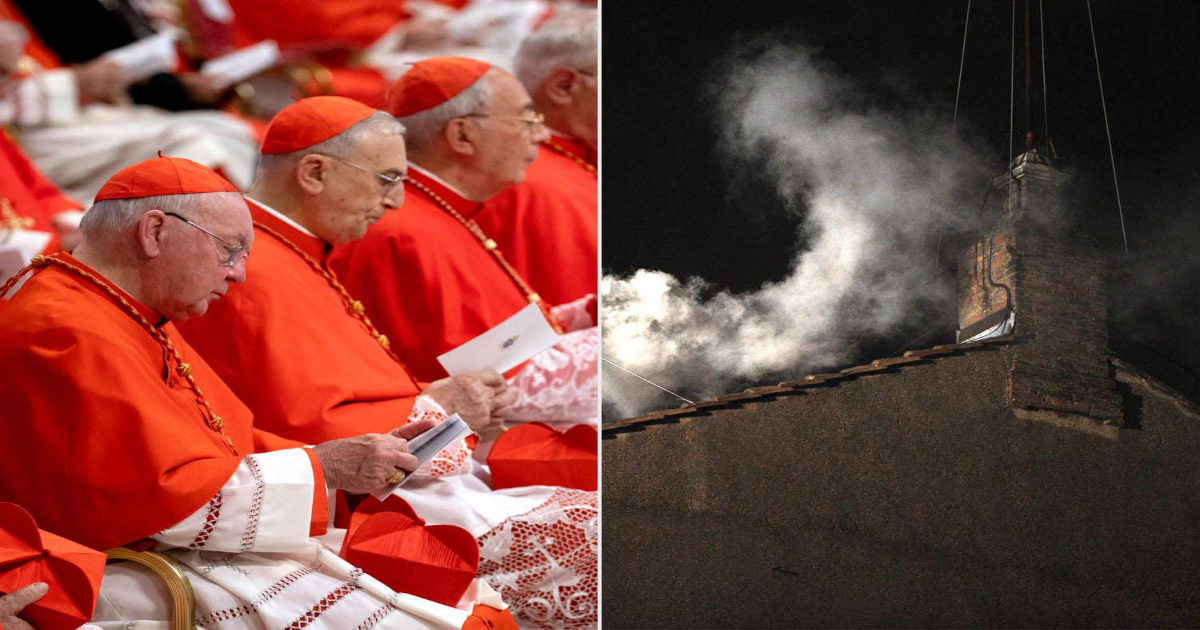 “After each vote,” Cummings explains, “smoke is sent up the chimney and it’s black. If it’s black, it means they have not elected a pope.”