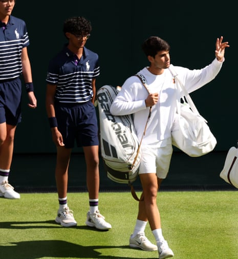Sinner won the toss and, as Alcaraz tends to do so perhaps because Alcaraz tends to do, he opts to receive.