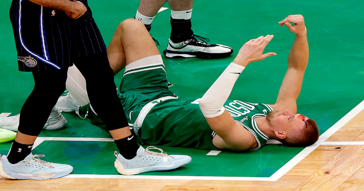 ⋅ In the final minute of the third quarter Porzingis took an elbow to the forehead from Magic backup big man Goga Bitadze, causing blood to gush. He went to the locker room to a loud roar, and returned moments later to attempt the flagrant foul free throws — with a big bandage on the front of his head and blood on the back — to an even louder one. Porzingis needed to take the free throws in order to be eligible to stay in the game, but he checked out afterward and was not on the floor to start the fourth quarter.